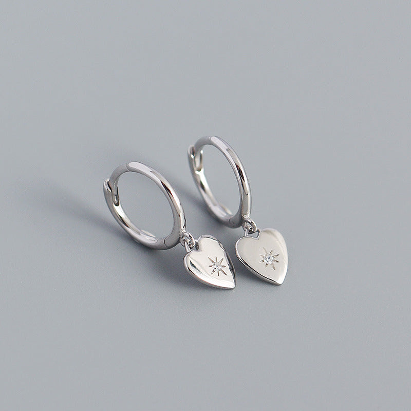 YHE0352 925 Sterling Silver Minimalist Heart Earring With CZ