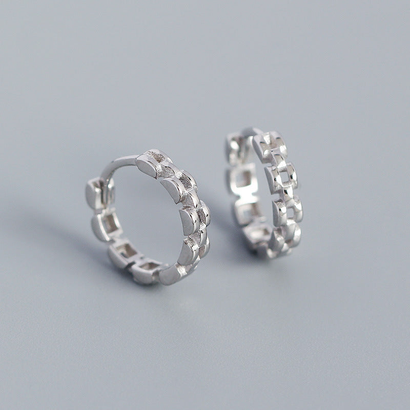 YHE0451 925 Sterling Silver Strap Chain C-shaped Open Circle Earring