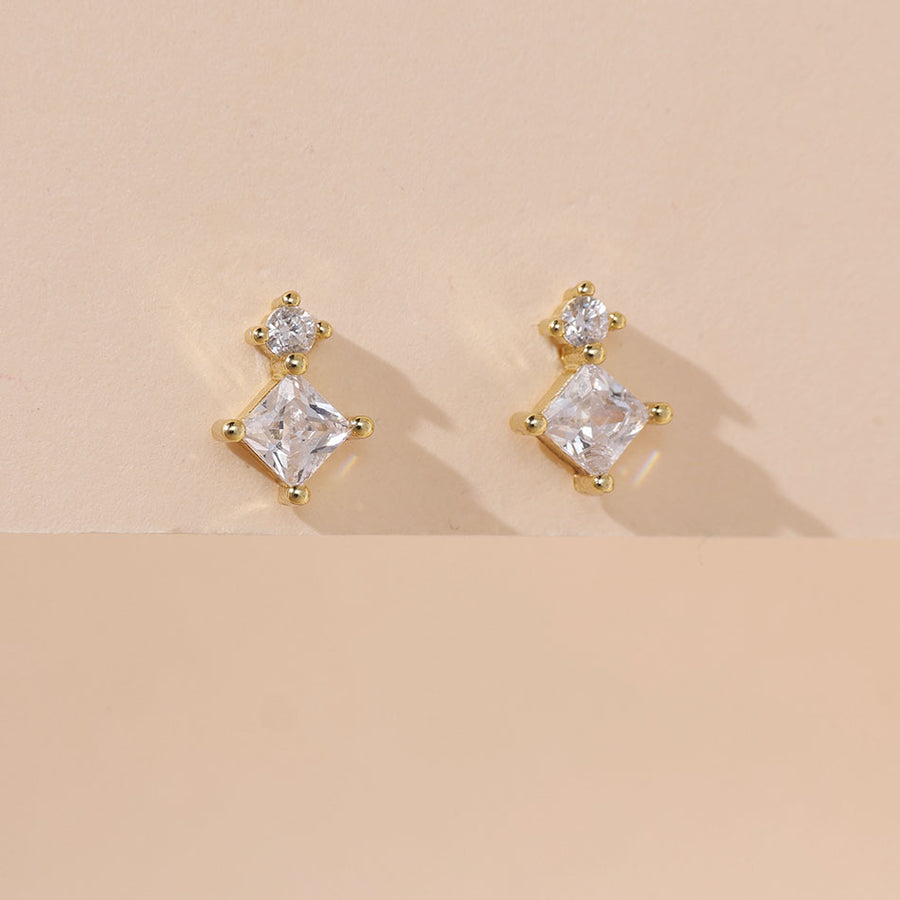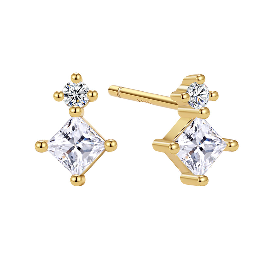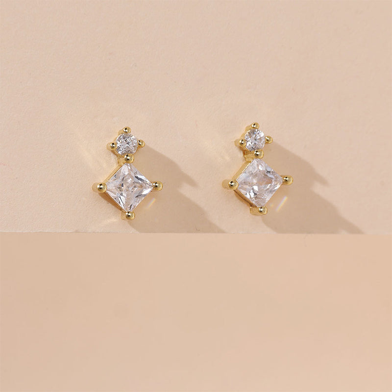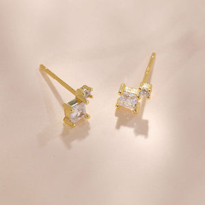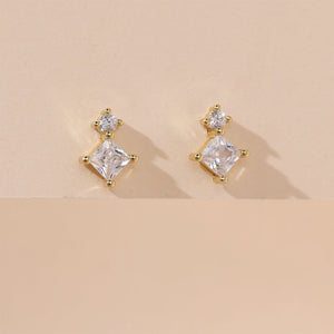 YHE0452 925 Sterling Silver Geometric Square CZ Stud Earring