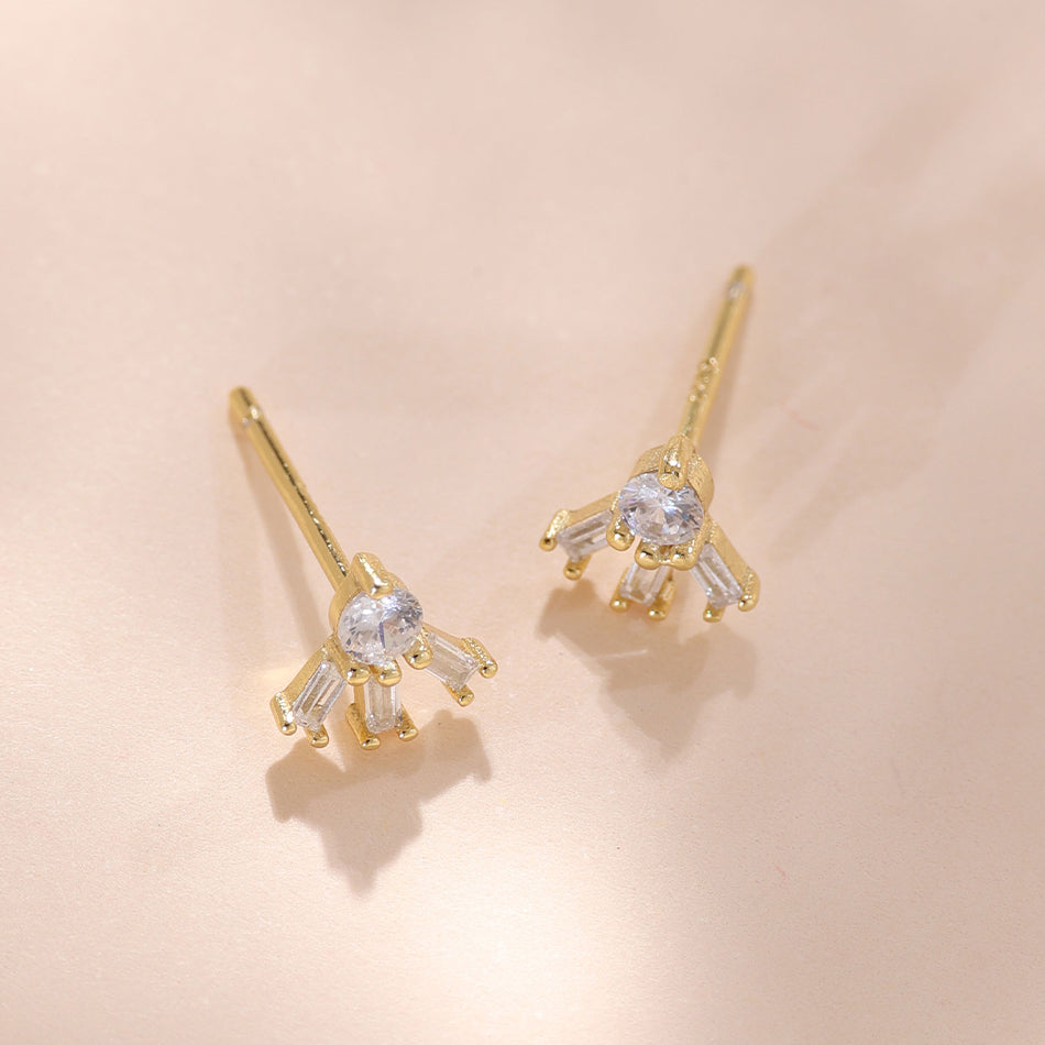 Stacked Ladder Cubic Zirconia Spring Stud Earrings |