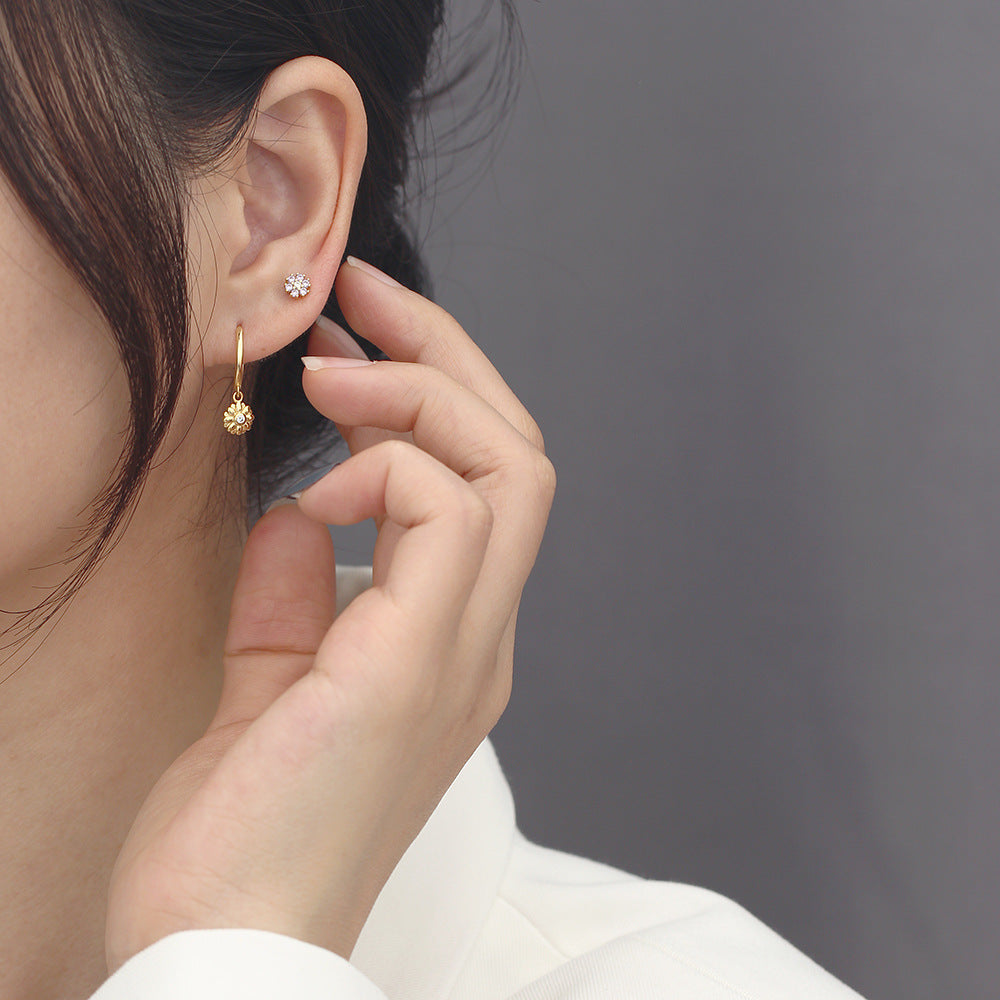 Dainty Daisy Flower Bezel CZ Dangle Hooo Earring |