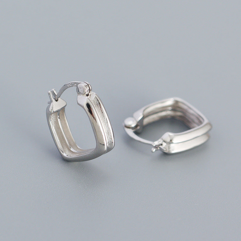 YHE0479 925 Sterling Silver Double Layer Square Earrings